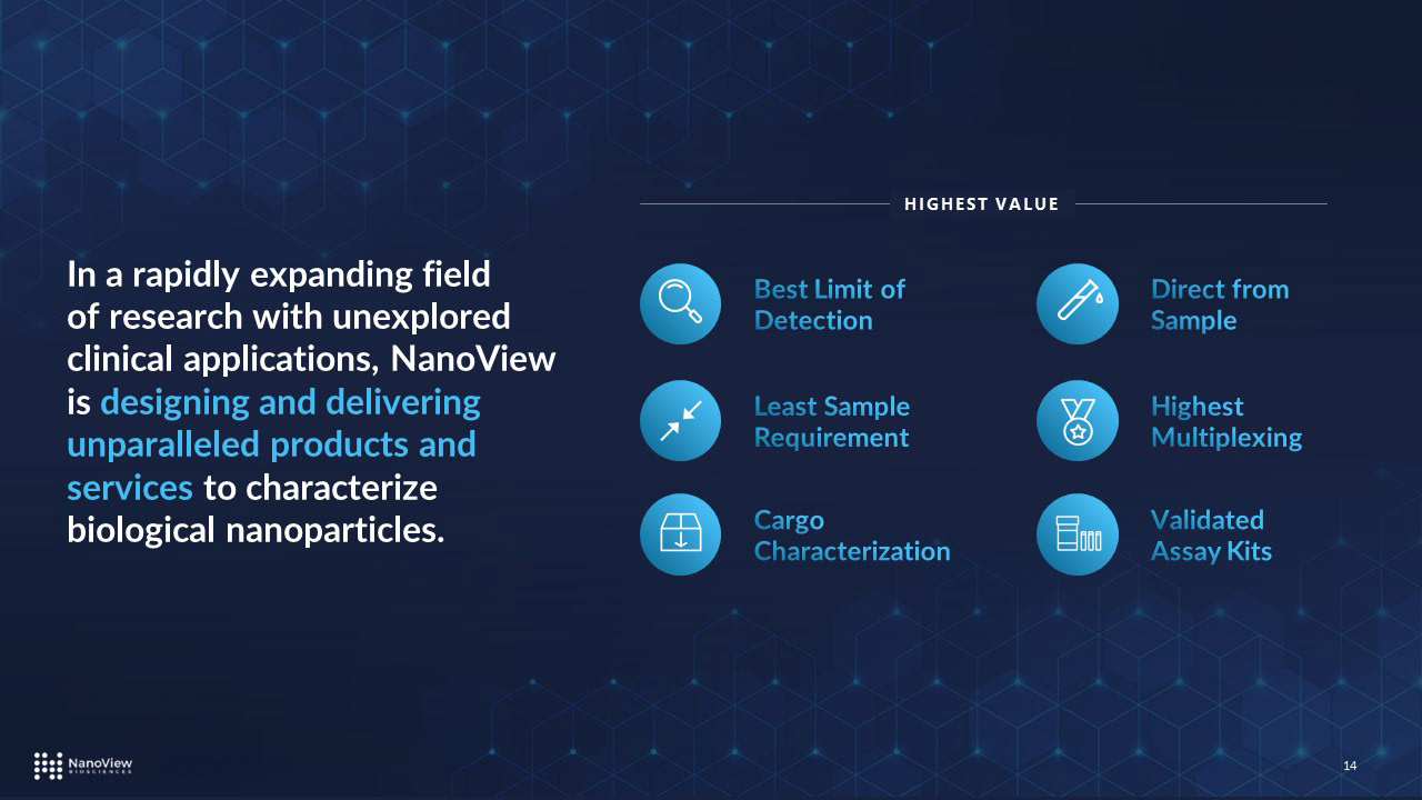 Before being sold in 2021, NanoView Biosciences hired Ben to design and compose several branded presentations for various conferences, accelerators, and investment opportunities. Ben took their brand guidelines and arranged a compact and efficient collection of deck templates that quickly became the company's go-to model for pitching and presenting.